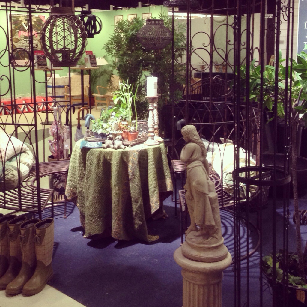 Vi har en härlig monter fylld med allt från stora fontäner och statyer, rosenbågen till vacker inredning och våriga blommor.