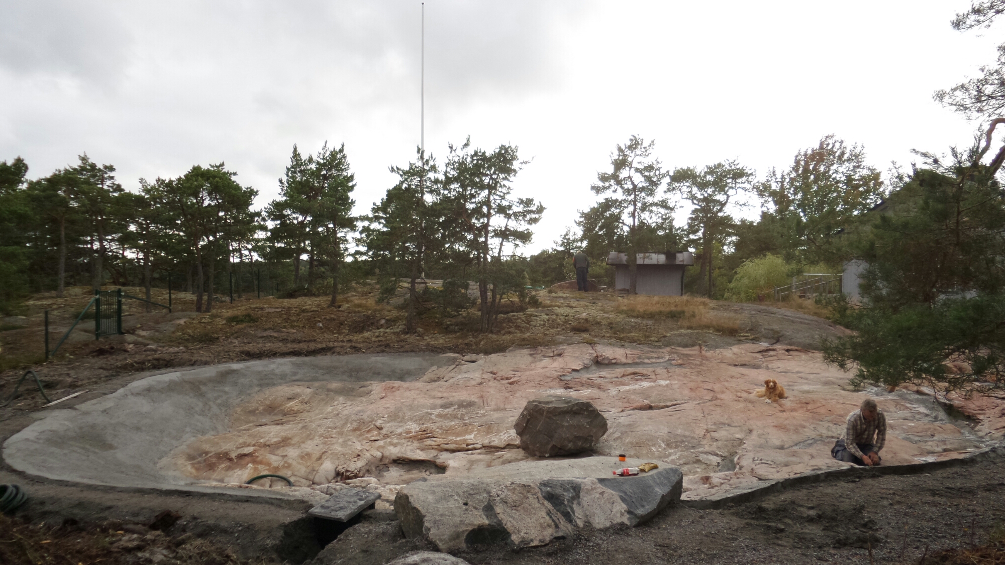 Vi jobbar för fullt med ett otroligt spännande och roligt dammbygge på Ornö. Det är ett stort vackert berg som skall bli en stor damm.